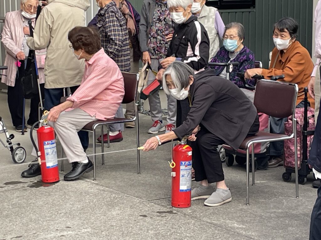 10月23日(木)に地震災害による防災訓練を行いました。居住者35名の方々とスタッフと一緒に防災クイズなどを行い、防災グッズを用意しておくことの大切さや避難の仕方など改めて再確認することができました。又水消火器での訓練では水を浴びてしまうなど、楽しみながら学ぶことができました。